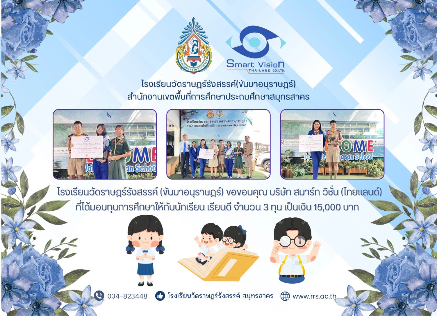 ขอขอบคุณ บริษัท สมาร์ท วิชั่น (ไทยแลนด์) ที่ได้มอบทุนการศึกษาให้กับนักเรียน