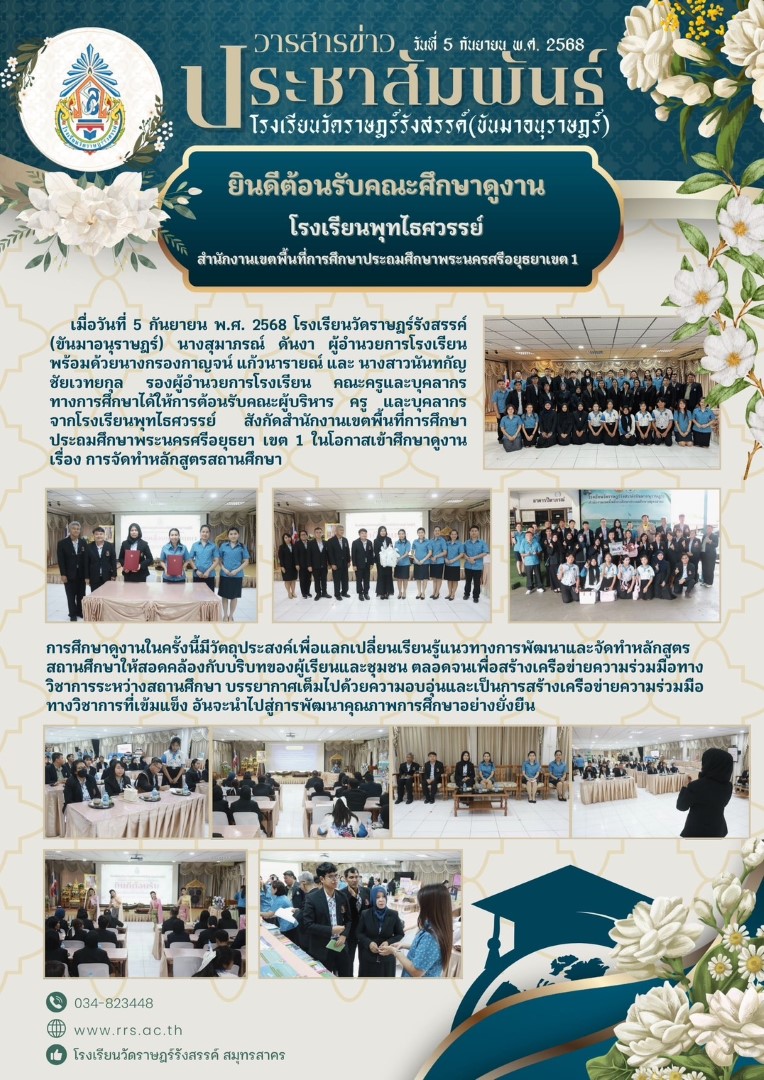 ยินดีต้อนรับคณะศึกษาดูงาน จากโรงเรียนพุทไธศวรรย์ สำนักงานเขตพื้นที่การศึกษาประถมศึกษาพระนครศรีอยุธยา เขต 1